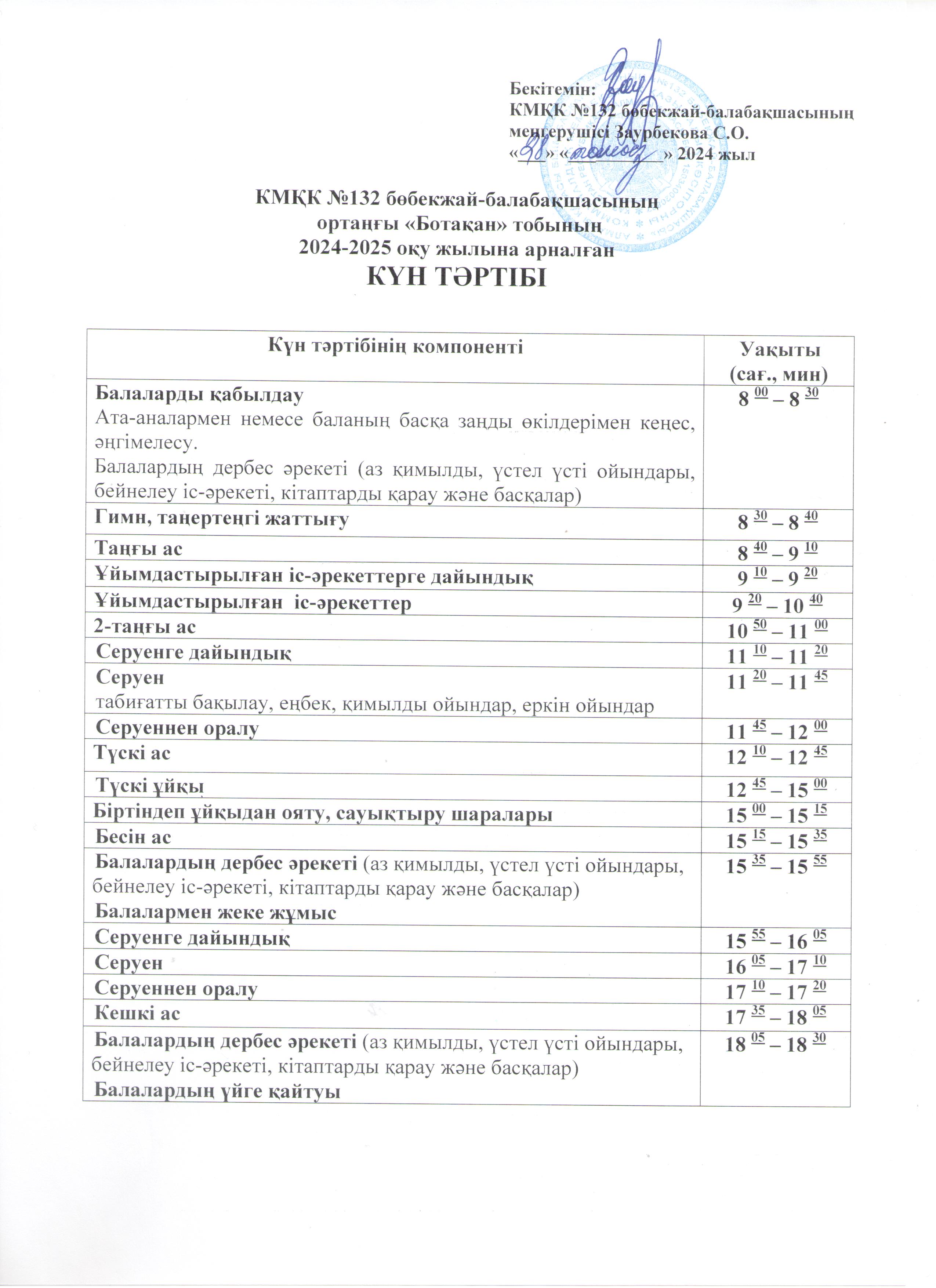 02 қыркүйек 2024 0 1 2 3 4 5 КМҚК №132 бөбекжай-балабақшасының ортаңғы «Ботақан» тобының 2024-2025 оқу жылына арналған КҮН ТӘРТІБІ