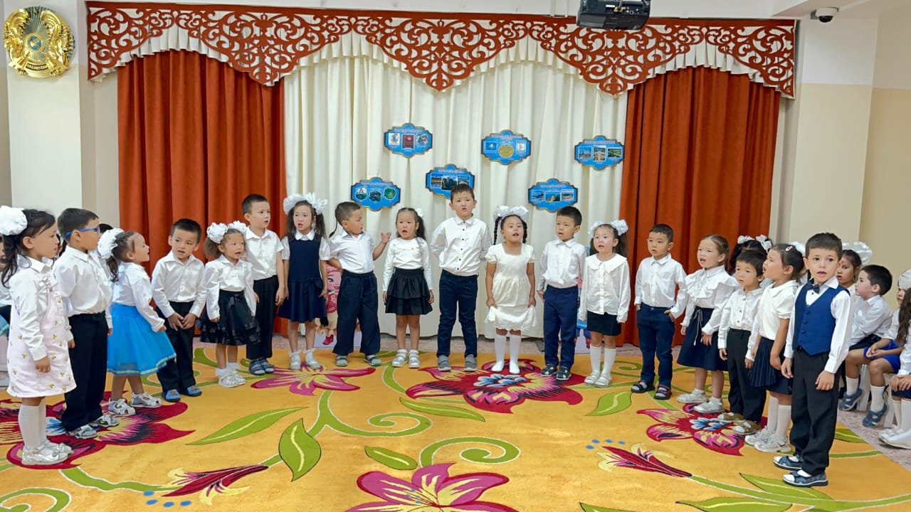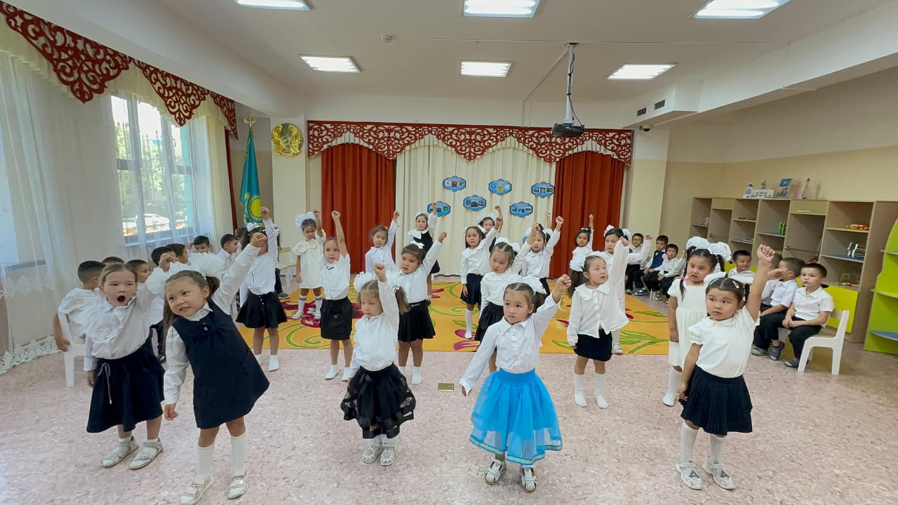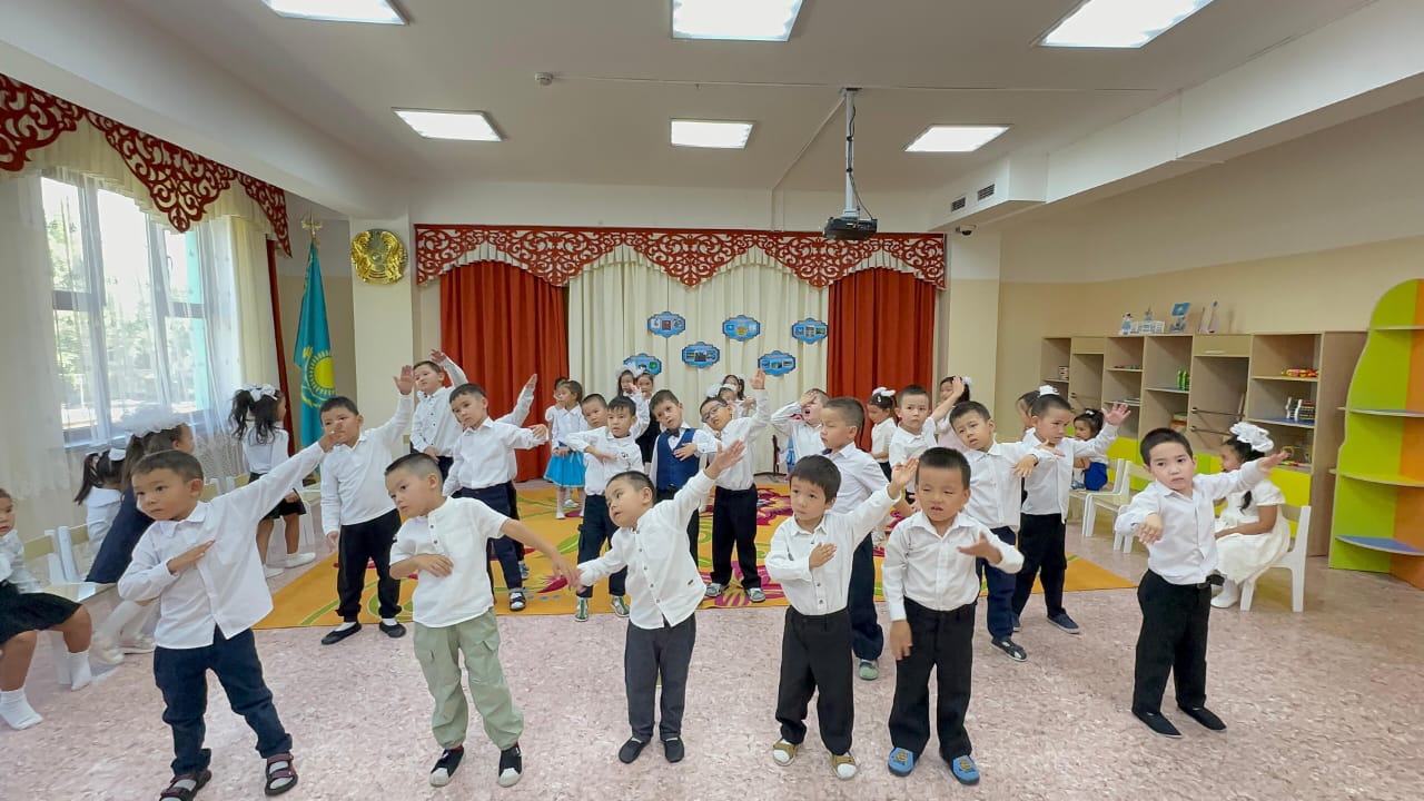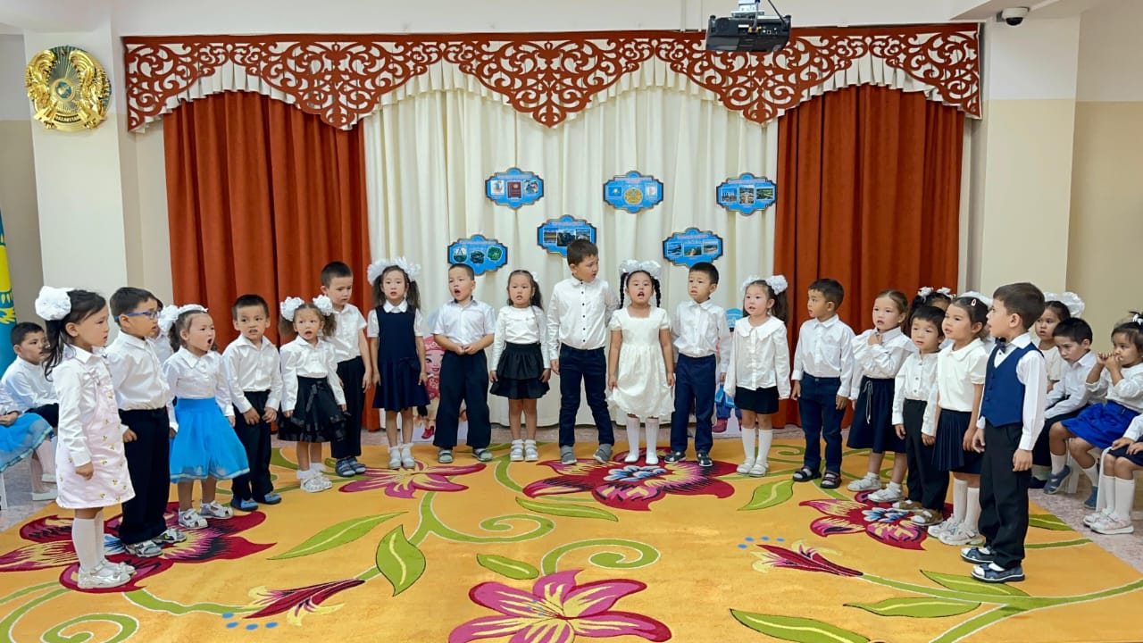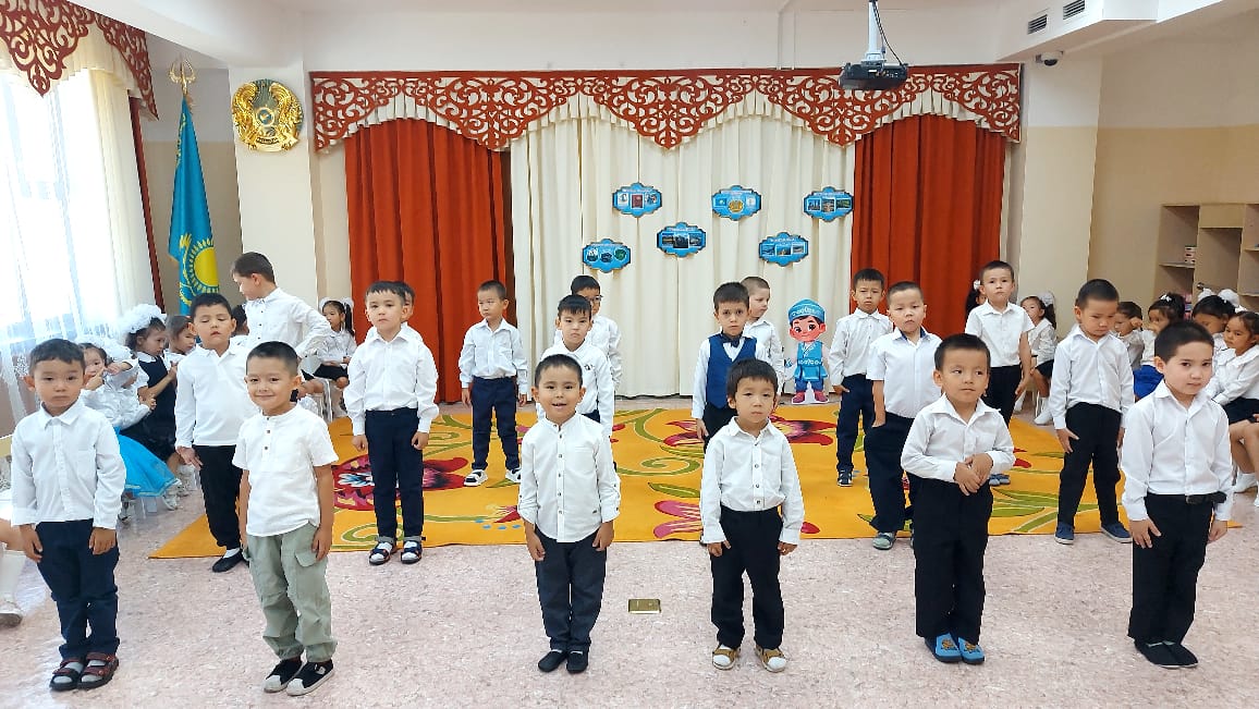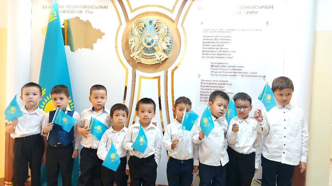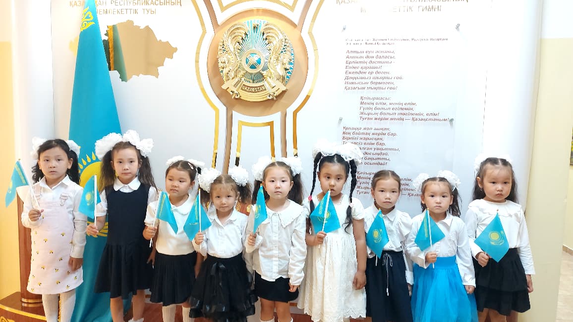 28 тамыз 2025 0 1 2 3 4 5 "Конституция елдің-негізгі заңы" мерекелік саптүзеу, Мектепалды "Күншуақ", "Ақжелкен" топтары