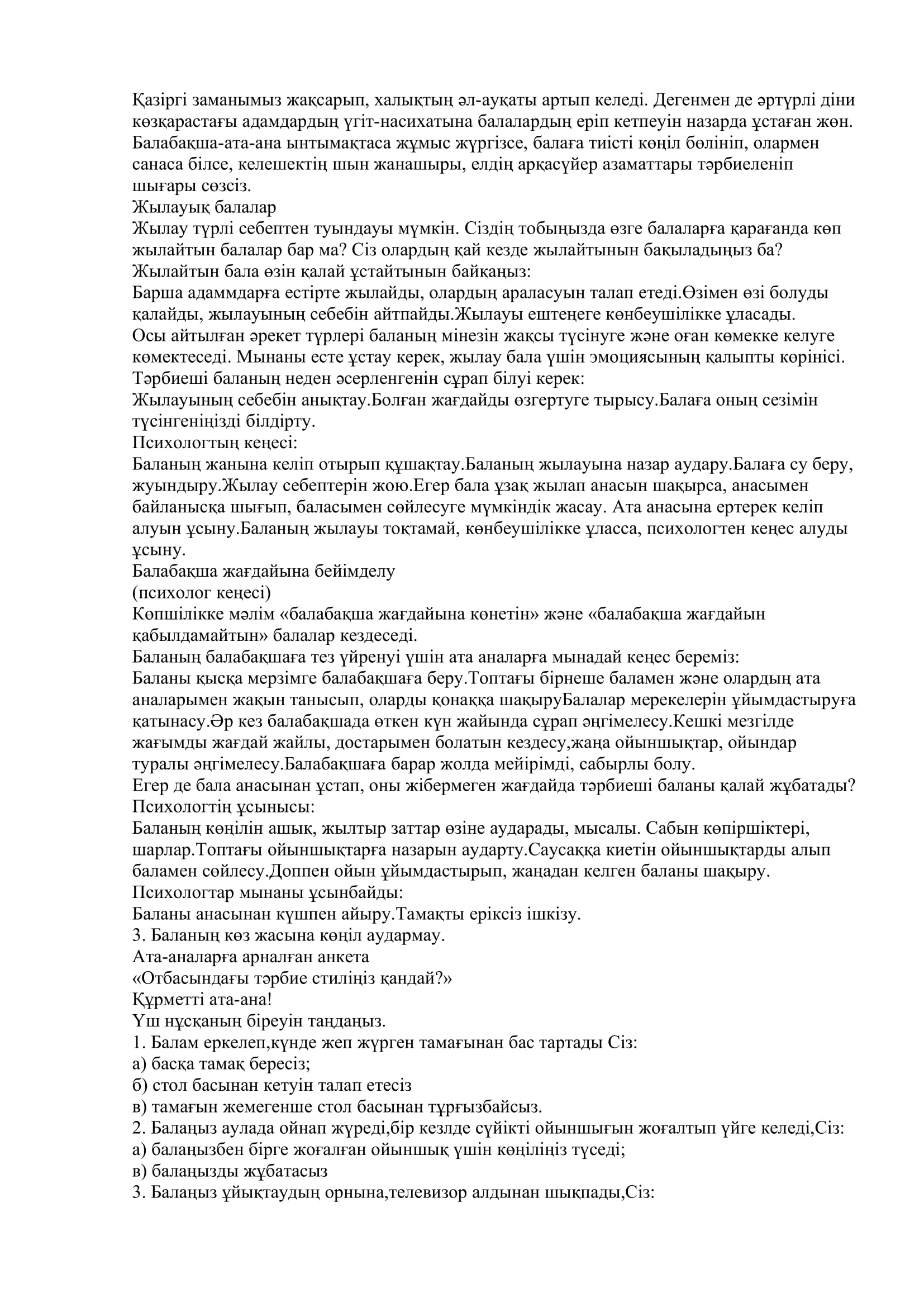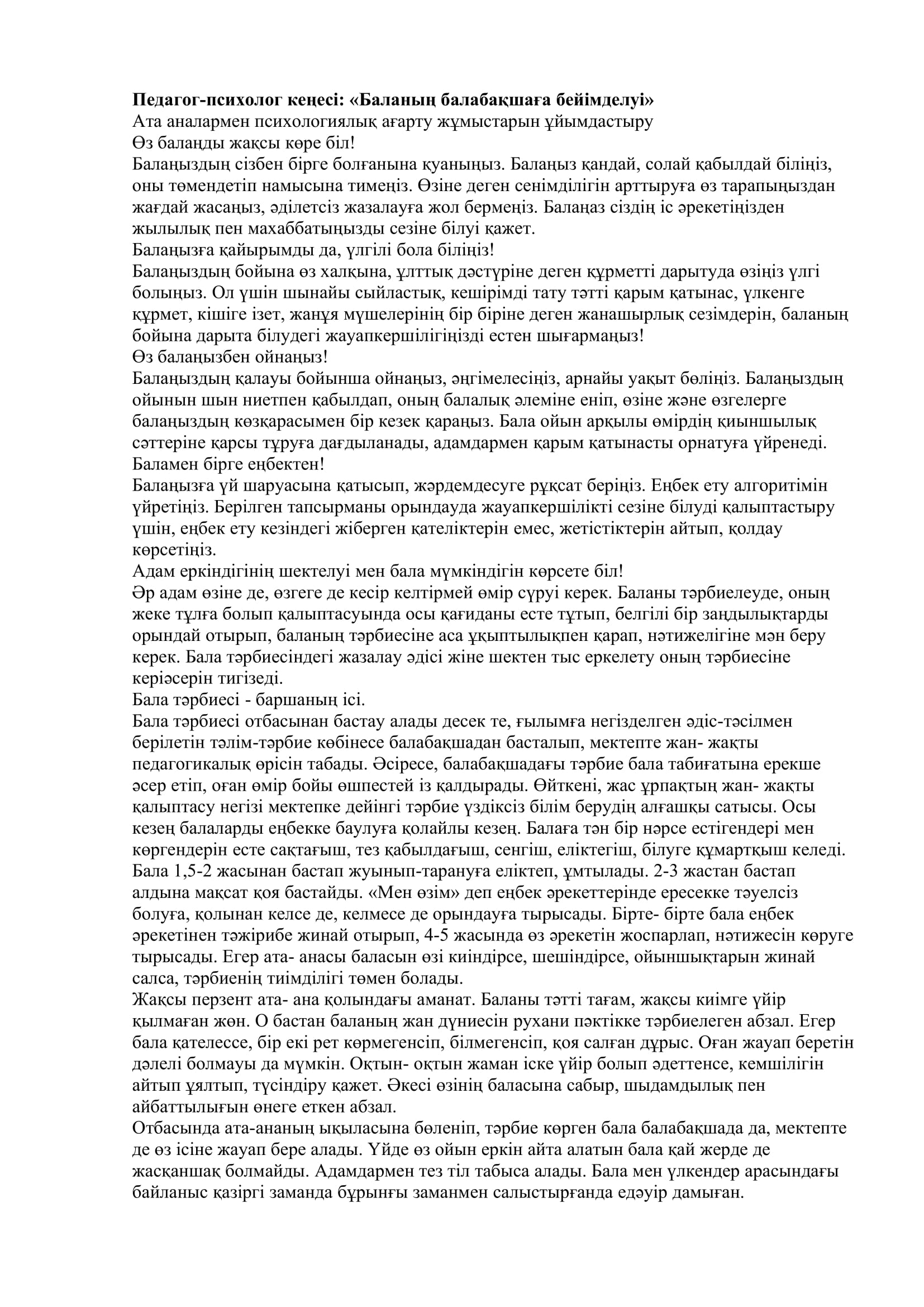 20 қазан 2025 0 1 2 3 4 5 Педагог-психолог кеңесі "Балалардың балабақшаға бейімделуі" мектепке дейінгі ұйымдарымен қамтылмаған балалардың ата-аналарына арналған кеңес