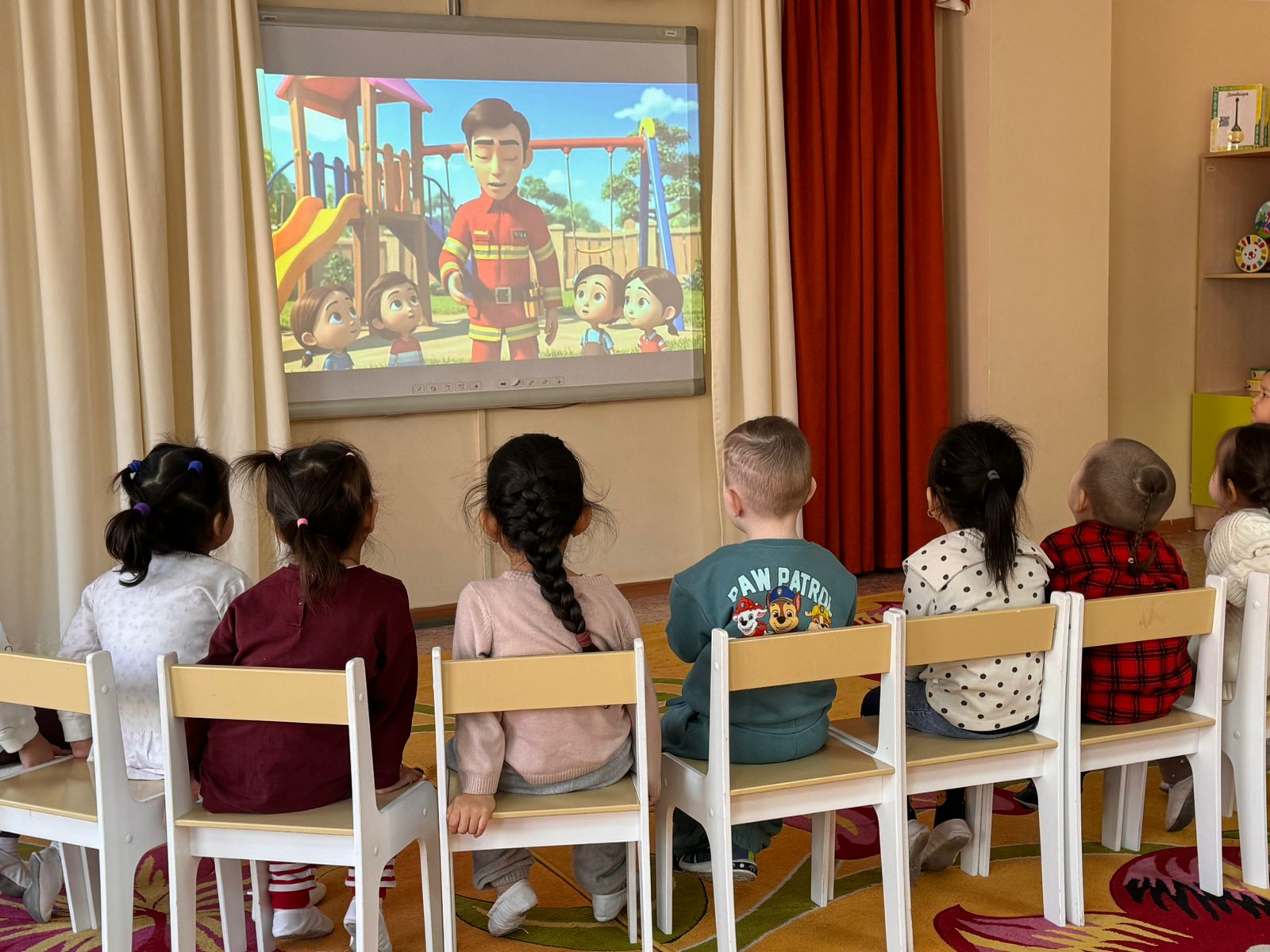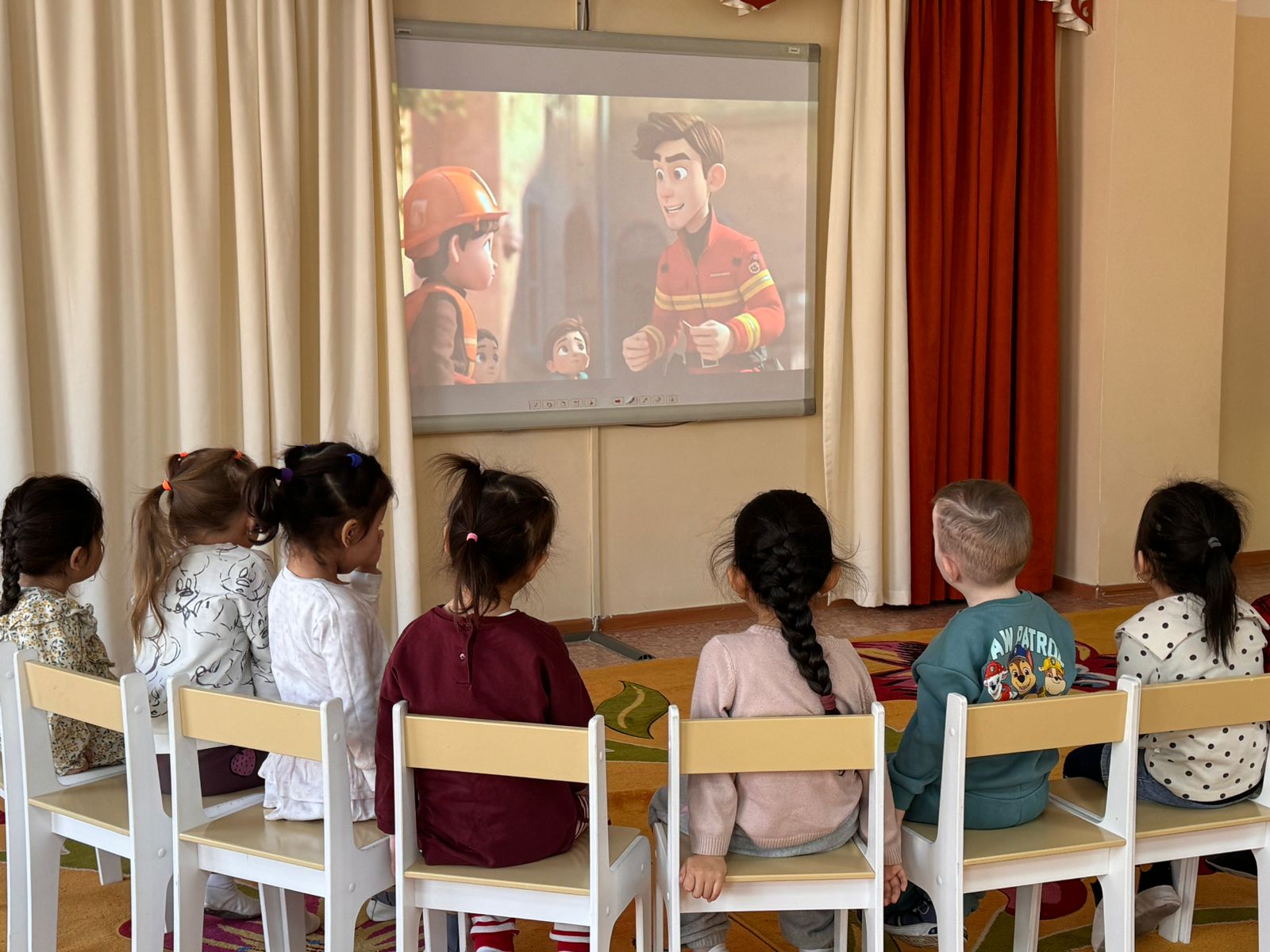 Өрт кезіндегі іс-әрекеттер: «Өрт кезінде 101-ге қоңырау шалыңыз!Өрт сөндіру бөлімін қалай шақыруға болады?» (жас ерекшеліктегі топтарға тақырыпқа сәйкес мультфильм көрсету)